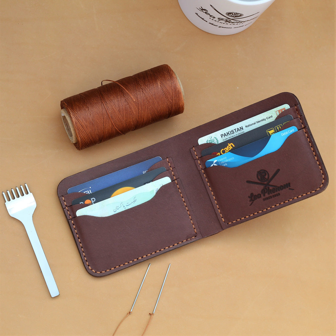 B6- BIFOLD WALLET (BROWN) One of the simplest, most classic & beautiful wallets in our collection. it is made from VEG LEATHER. The men's billfold leather wallet is one of the most popular wallet styles in the world. It is stitched with beautiful & durable imported Nylon-Waxed thread. Edges are hand-burnished to perfection