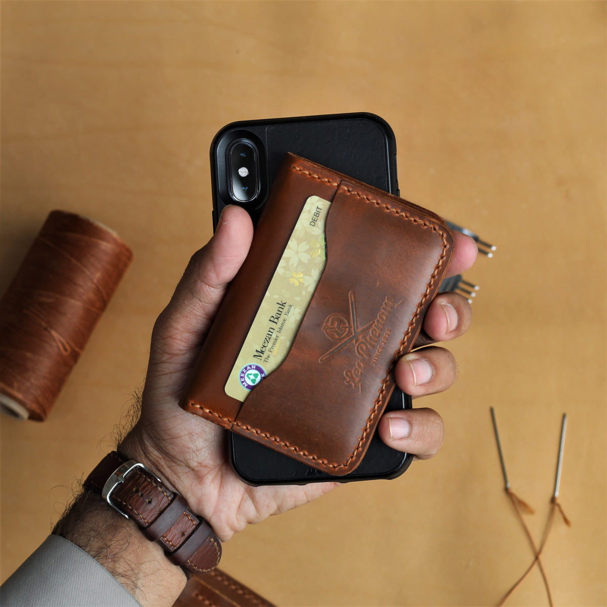 A simple VB30 vertical-style Handstitch bifold card wallet that is completely unique to any other wallet. with 4 card slots and 2 hidden pockets. Neatly treated edges and branded with our signature maker's mark.